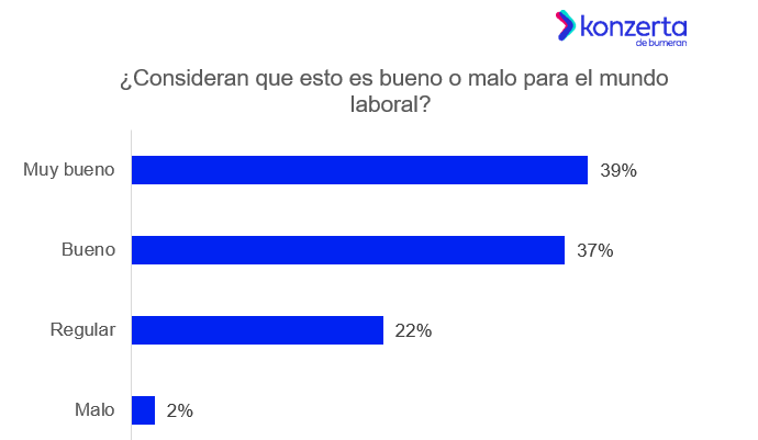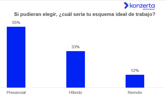 Según el estudio 100% Presencialidad, de Konzerta, portal líder de empleo en Panamá, el 90% de los especialistas en Recursos Humanos afirma que el regreso a la presencialidad 100% en el mundo laboral es un hecho. Panamá es el país con el mayor porcentaje de especialistas que lo afirma, en el resto de la región la tendencia es menor: en Ecuador el 89%; en Perú el 83%; en Chile el 79% y en Argentina el 77%.